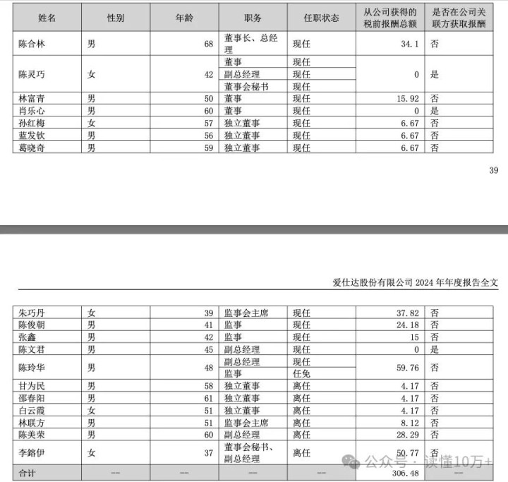 2024年年报显示,公司董事、监事和高级管理人员2024年报酬总额306.48万元。董事长、总经理陈合林2024年从公司获得的税前报酬总额为34.1万元,未在公司关联方获取报酬。董事、副总经理、董事会秘书陈灵巧2024年从公司获得的税前报酬总额为0,在公司关联方获取报酬。监事会主席朱巧丹2024年从公司获得的税前报酬总额为37.82万元,未在公司关联方获取报酬。
