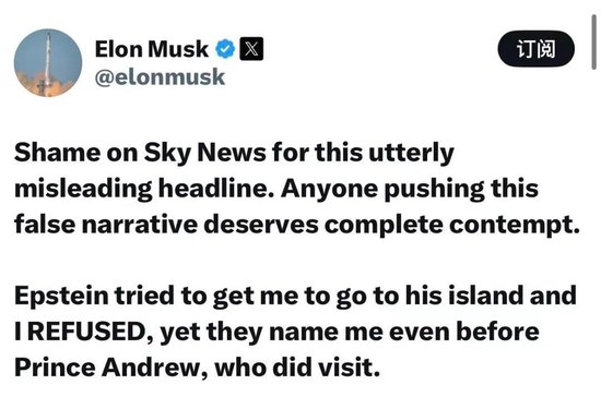 马斯克在社交媒体发帖,指责天空新闻频道这一标题误导受众,“丢人现眼”,任何推动这类虚假叙事的人都应受到彻底鄙视。